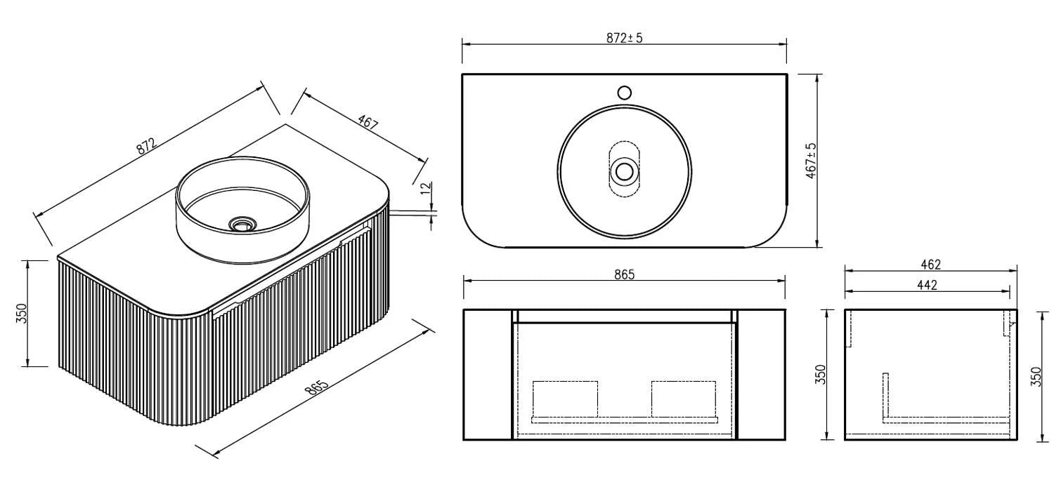 Introducing the exquisite Flauto Country Oak 870mm Wall Hung Curve Corner Vanity with Sintered Stone Countertop, a masterpiece of design and functionality. This innovative vanity unit, sized at 872mm x 467mm x 365mm, is specifically crafted to enhance the elegance and utility of your bathroom space. Its distinctive curved corner design is not only a space-saver but also adds a touch of sophistication to the room. Clad in a warm Country Oak finish and equipped with sleek inset handle designs, this vanity stands as a testament to contemporary craftsmanship. The premium soft close, metal drawers ensure durability and a seamless experience, while the sintered stone countertop offers unparalleled beauty and resilience.