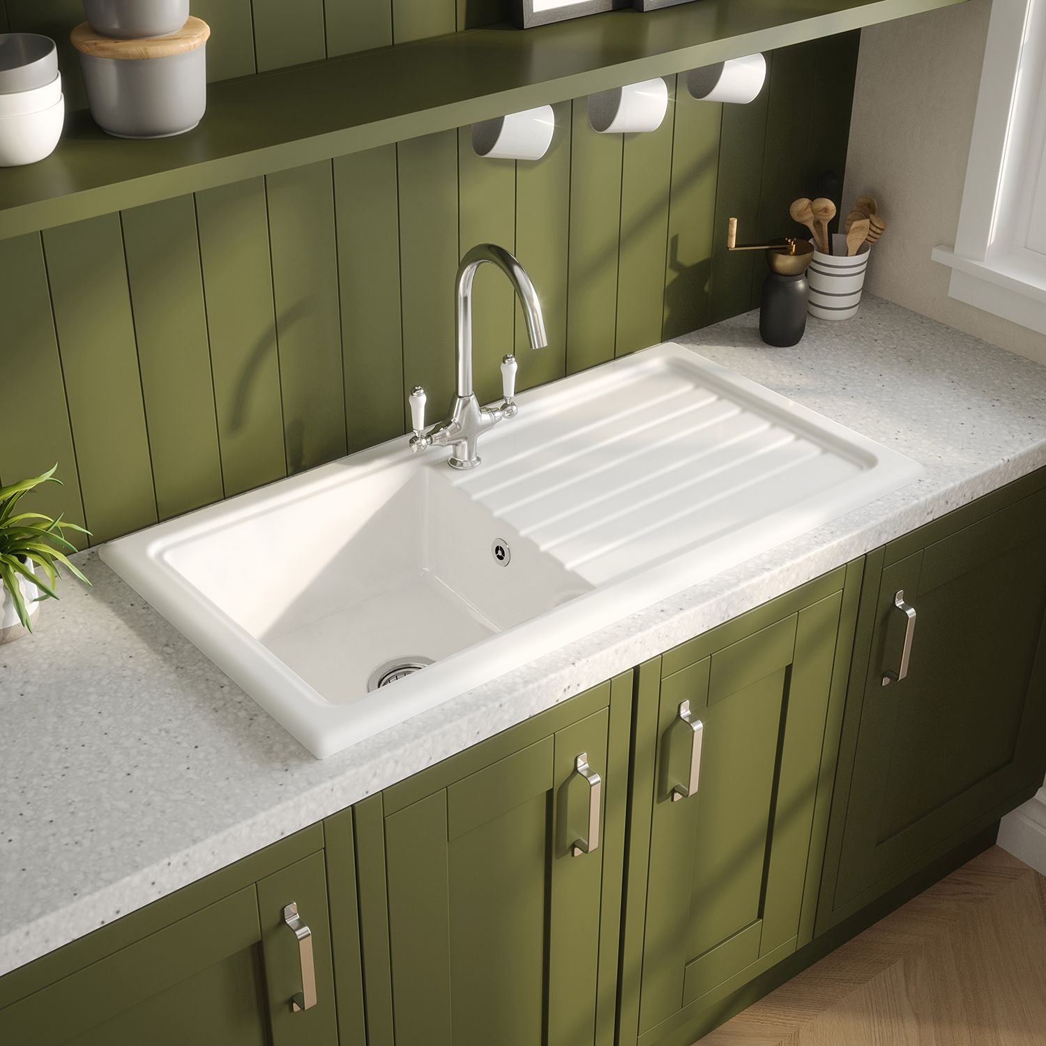 - Reginox RL 304 CW II Ceramic Single Bowl Kitchen Sink with Drainer